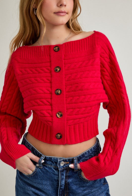Red knitted button cardigan